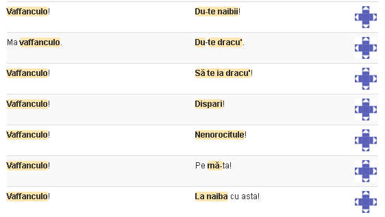 Pentru cei mai pudibonzi traducerea cuvântului vaffanculo conform site-ului ro.glosbe.com: