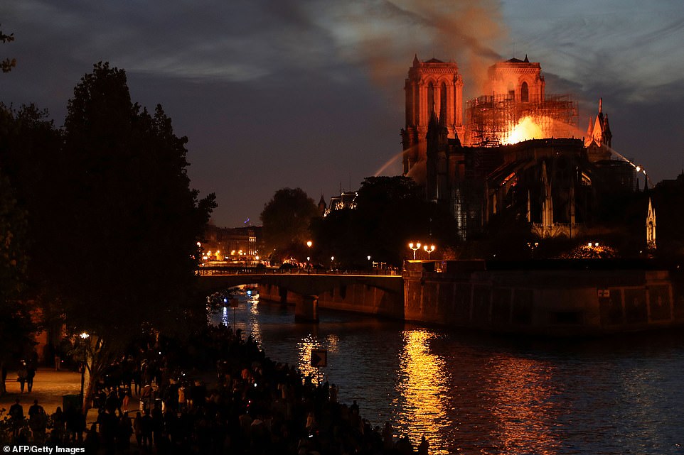 Incendiul a izbucnit chiar înainte de ora 19:00 locală într-o zonă a acoperișului care se restaura. Aproximativ 7 milioane de € au fost alocate pentru renovarea acestuia. Serviciul de pompieri a spus aseară că pornesc de la ipoteza unui accident, dar investigațiile continuă. Mai mult de 400 de pompieri s-au luptat cu flăcările, care s-au răspândit rapid de-a lungul structurii acoperișului. Materialul lemnos din care era făcut acesta a căzut peste plafonul bolții de dedesubt care s-a prăbușit. Chiar dacă a căzut pe culoarul principal al naosului, pe contul Twitter al catedralei s-a spus că daunele din interior nu sunt atât de mari.