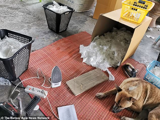 Poliția a luat cu asalt luni o casă din provincia Saraburi, la nord de Bangkok, după ce a primit un pont anonim. Șase muncitori au fost descoperiți punând măști de față într-o mașină de spălat. Acestea erau ulterior călcate și vândute ca și cum ar fi noi, informează publicația online Coconuts.
